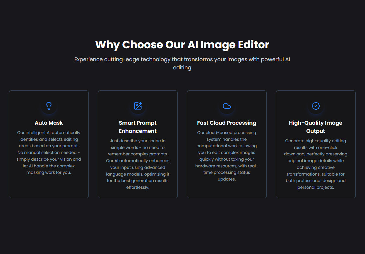 The tool uses the Auto Mask tool, automatically recognizing the areas of the image that need to be edited. All you need to do is input a prompt, using the simplest language possible. Describe your preferences, and the advanced language model will be used to enhance your prompt and put it into action.